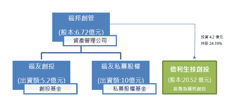 福邦證券為發展資產管理業務,於民國102年10月24日成立福邦創業投資管理顧問股份有限公司(以下簡稱福邦創管),同年管理福邦創業投資股份有限公司(為福邦證券100%轉投資之子公司),由於績效良好,於105年7月協助福邦創投對外募資,引進產業界投資,資本額由1億元增加至7.27億元,福邦創投後於112年轉型為倍利生技創投,股本增加至20億元,由本公司投資4.2億元持股24.39%,並獨立運營,由本公司董事長黃顯華先生擔任其董事長。